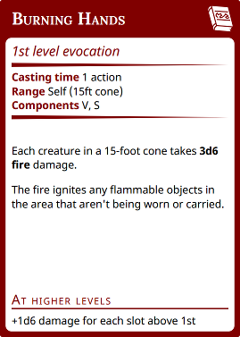 "text | Each creature in a 15-foot cone takes 3d6 fire damage.",